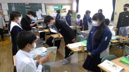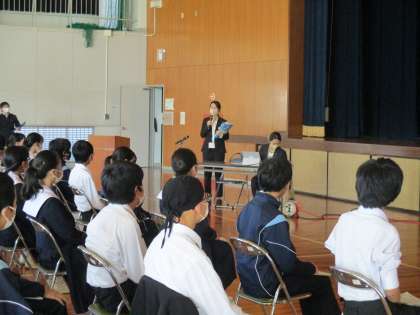 2年生は職業人体験学習に向け、講師の方を招き、あいさつや礼の仕方をはじめ、基本的なマナーについての学習を行いました。