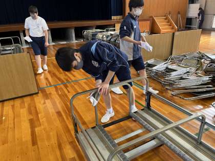 会場は篠岡中学校で、会場の設営も全員で協力して行いました。