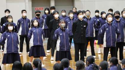 今日は全校で卒業式の練習を行い、式の流れや基本的は動きの確認をしました。