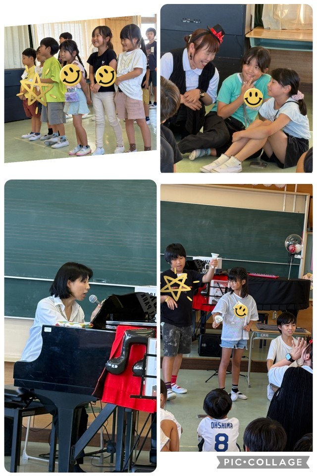 特に合唱は、陶小学校の毎月の「今月の歌」を事前にリサーチしてくださって、じゅんこさんのピアノ演奏でみんなで大合唱しました。最後は子どもたちからのリクエストにも答えてくださり「翼をください」もみんなで歌いました。