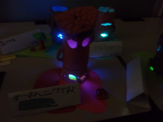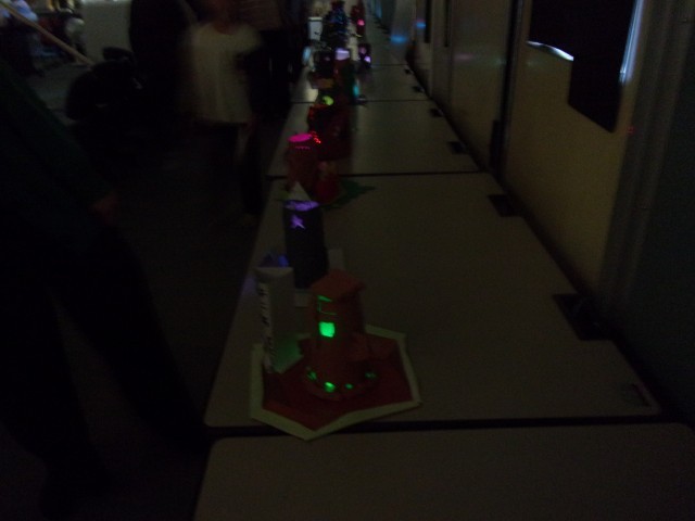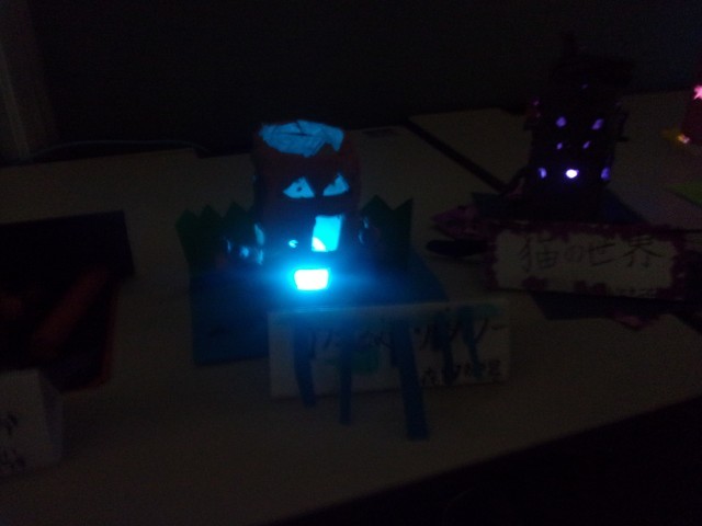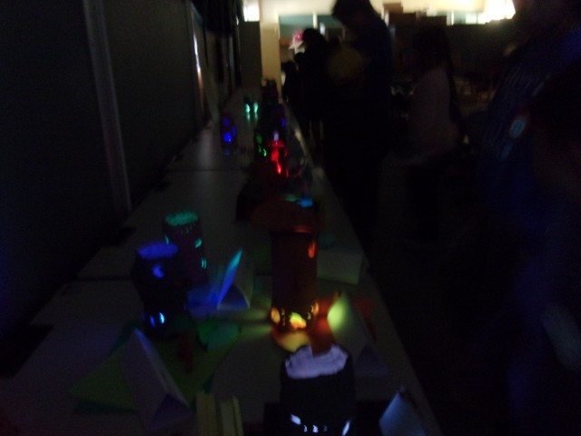 「僕・わたしの『ランプシェード展』」と銘打って、暗くした特別教室を特設展示会場にすると、たくさんの児童が鑑賞に来ました。
