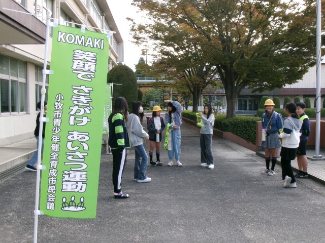 市内全ての小中学校同時であいさつ運動を実施しました。