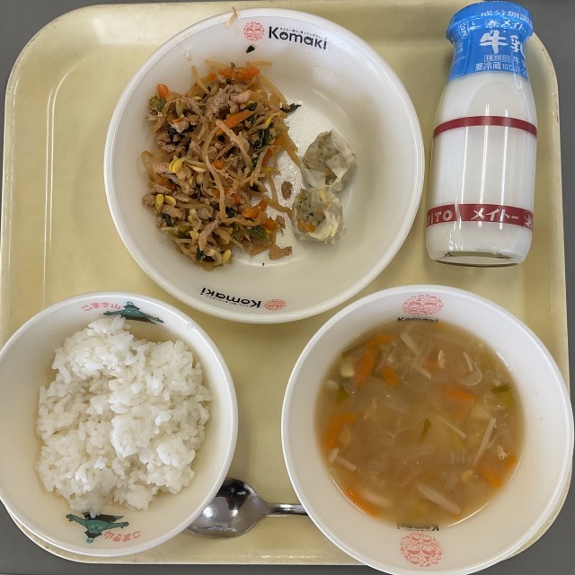 ごはん 牛乳 トックスープ 野菜しゅうまい ビビンバ