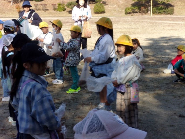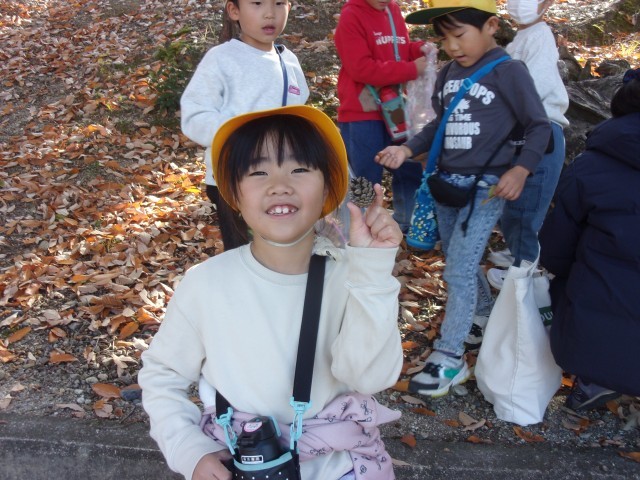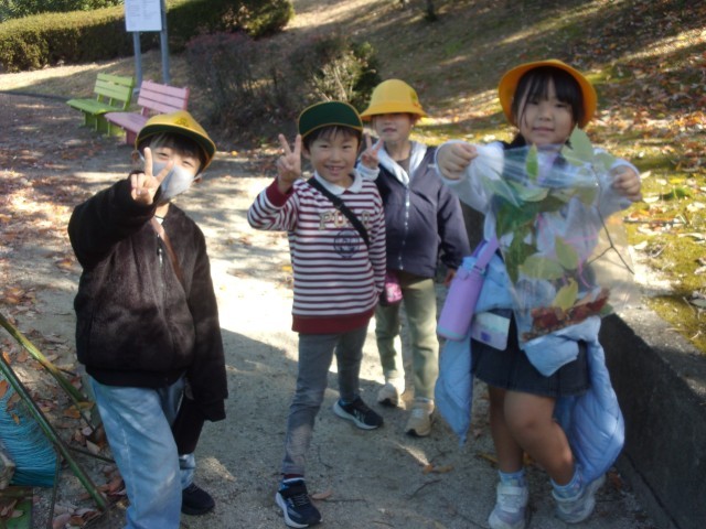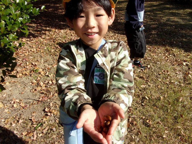 大城小学校の1年生とともに、落ち葉や木の実など秋らしいものをみつけました。