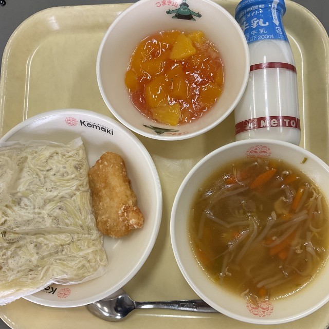 中華めん 牛乳 しょうゆラーメン かれいの竜田揚げ フルーツゼリーあえ