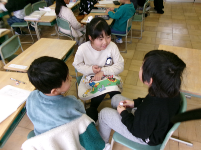 久しぶりに会った友達と、冬休み中の楽しかった出来事を報告し合いました。話が尽きない様子でした。