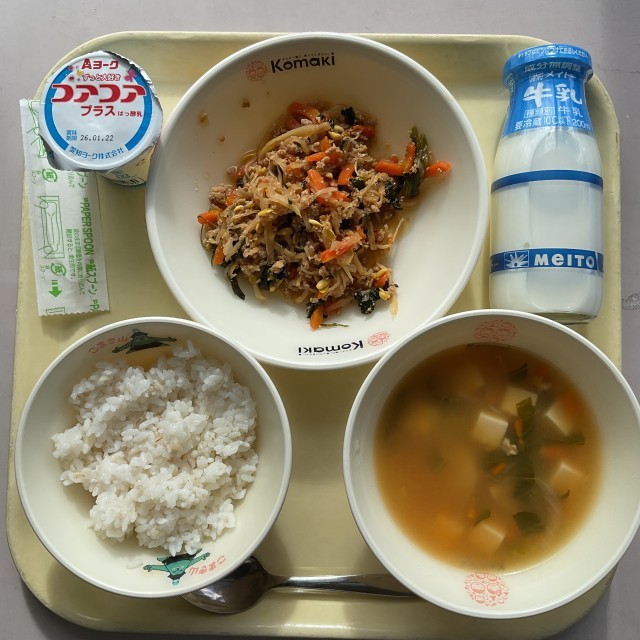 麦ごはん 牛乳 トックスープ ビビンバ ヨーグルト