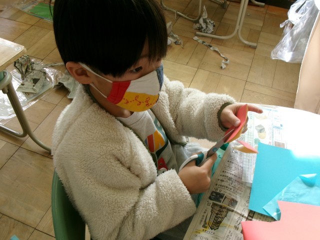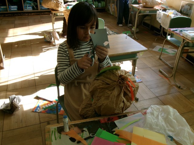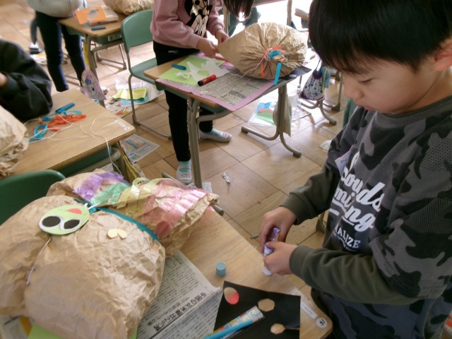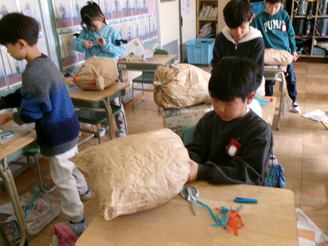 1/9 図工:くしゃくしゃ ぎゅっ(2年生)