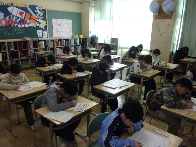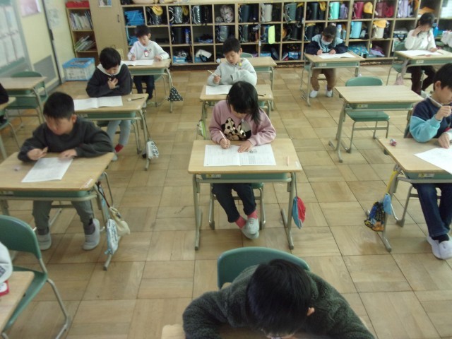 全学年で、国語と算数の学力検査をしました。