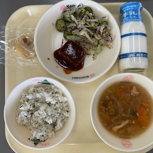 今日から30日までの1週間は、「全国学校給食週間」です。日本の学校給食は、明治時代、山形県鶴岡市の小学校で、お弁当を持ってくる子ができない子どもたちのために、食事を提供したのが始まりと言われています。その後、全国に少しずつ給食が広まり、現在では、ほぼ全国の小中学生が学校給食を食べています。