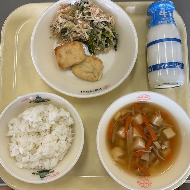 ごはん 牛乳 さわにわん 豆腐ナゲット なばなのあえもの