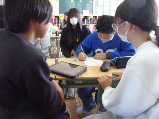 卒業生を送る会に向け、互いに声を掛け合いながら発表の練習をしました。