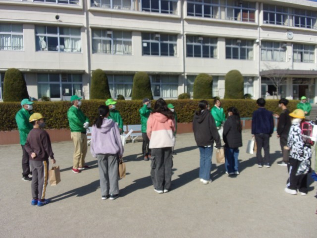 1年間、毎日お世話になった通学路パトロールボランティアの皆様に、6年生を中心として、みんなでお礼を伝えました。