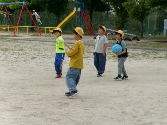 天気がよく、たくさんの子が外で元気よく遊んでいました。