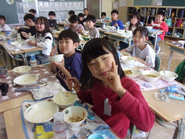 3年生と4年生の給食時の様子です。