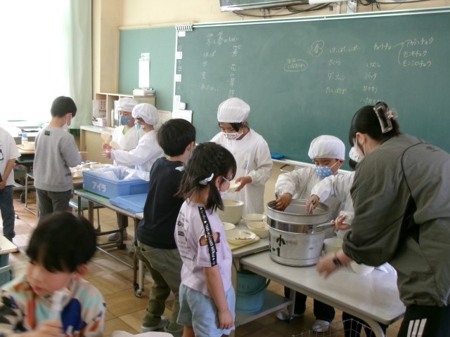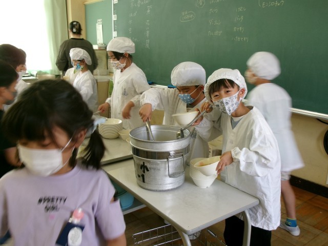 静かに落ち着いて、かつ一生懸命給食の準備をしました。