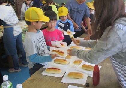 朝食です。メニューは、今年からホットドッグとコーンスープ。