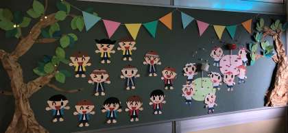 9月7日は9月の第1金曜日。図書整備ボランティアの活動日です。今日の活動では図書室廊下の掲示板を運動会バ−ジョンに変更しました。
