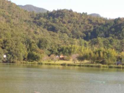 ガイドさんの話やきぬかけの路沿いの景色を車窓から楽しみながら、鹿苑寺金閣をめざします。