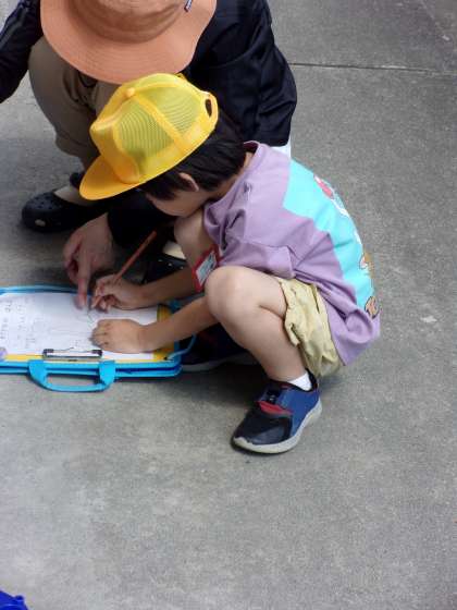 アサガオの成長の様子を観察カードに絵と文で表しました。