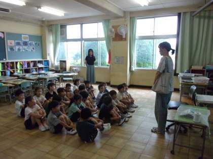1年生にて読み聞かせがありました。みんなでボランティアさんにお礼を言いました。