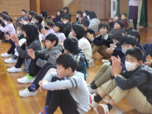 2月26日に行う卒業生を送る会のリハーサルを行いました。5年生が下級生に呼びかけながら、練習しました。