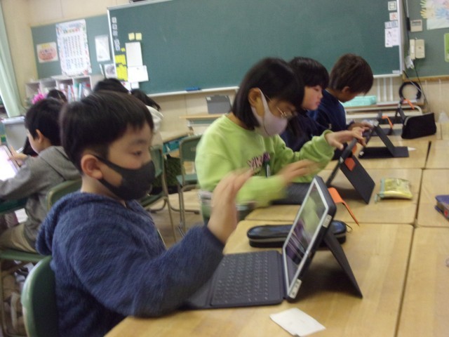 できあがった作品を鑑賞し合い、感心したことをタブレットを使ってまとめました。