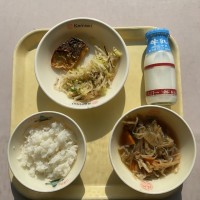 ★今日の給食★ ごはん 牛乳 豆乳入り白みそ汁 寒さわらのねぎソースかけ じ...