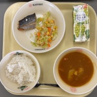 ★今日の給食★ ごはん 牛乳 牛肉とごぼうの炒め煮 さばのカレー風味 キャベ...