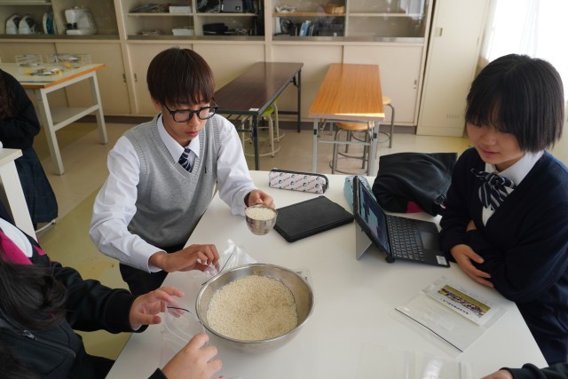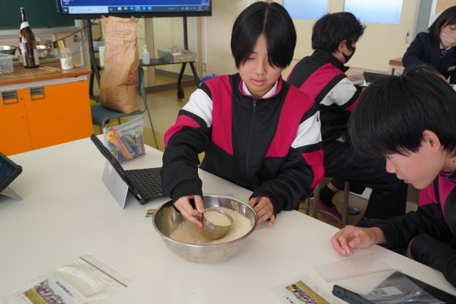 5月に滋賀県栗見出在家町で田植えしたお米が収穫・精米されて届いたので、自分たちで1合分計量しました。