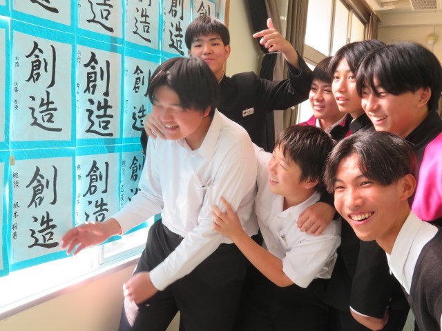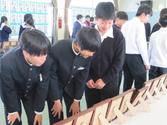 書写競技会や美術競技会で頑張った作品や、創作部や情報部の作品を順番に鑑賞しました。