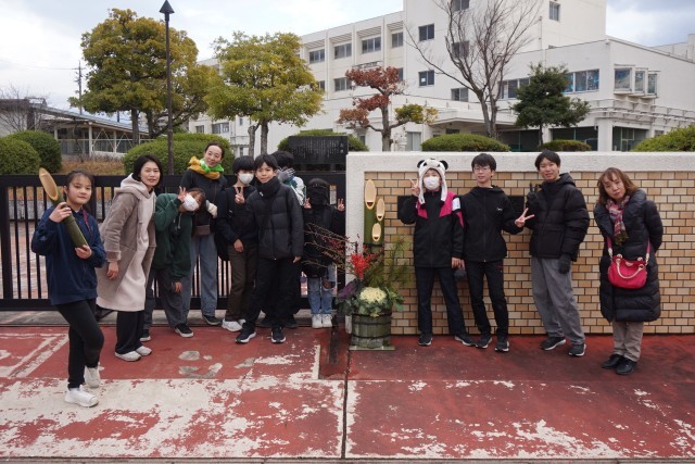 緑道を通るときには、桃ヶ丘小と桃陵中の門松をぜひ眺めてください。