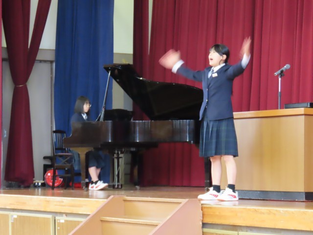 始業式では、校歌の指揮伴奏が2年生にバトンタッチです。