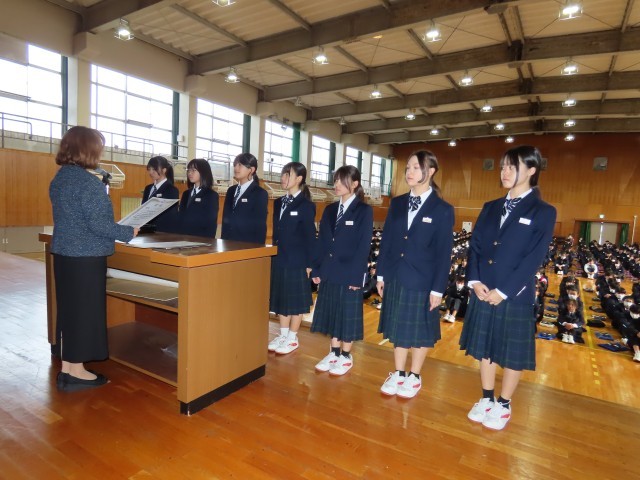 校長先生から、未来を見据えた目標の話、生徒指導の先生の話、そして吹奏楽部の表彰もありました。
