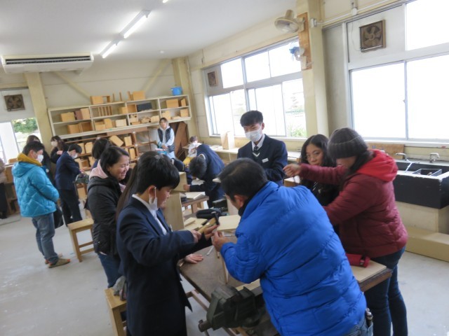 保護者の方々と一緒に学ぶ様子が見られ、生徒たちはうれしそうでした。