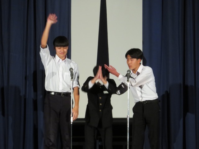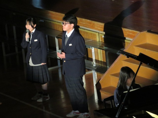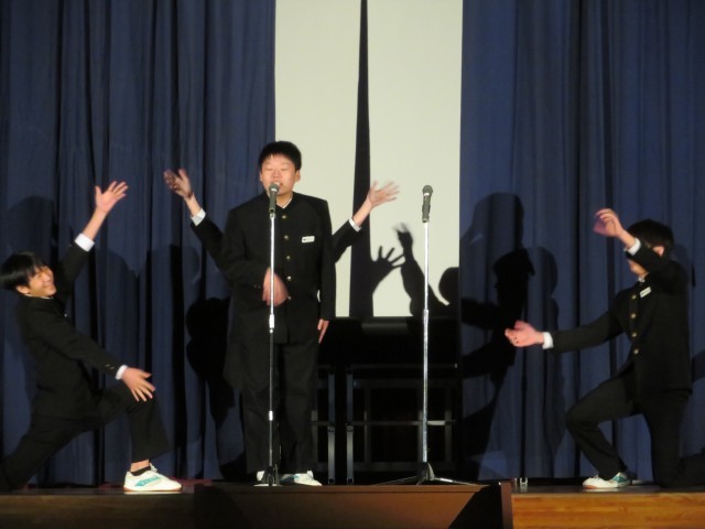 1年生吹奏楽部の演奏、2年生学年運営の劇、有志の歌唱、1年生有志のコント、どれも素晴らしかったです。