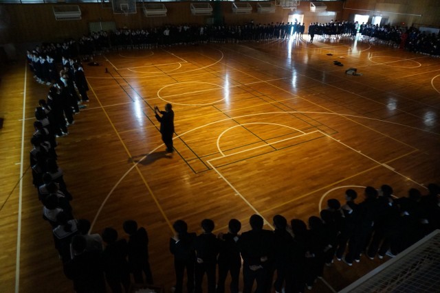 最後は、3年生の呼びかけで全校生徒が輪になって歌い、大熱唱で締めくくりました。