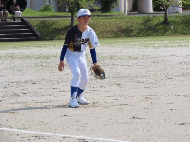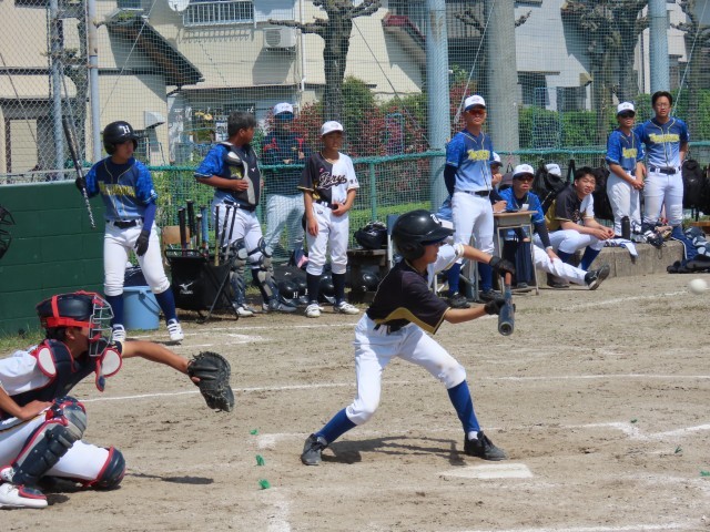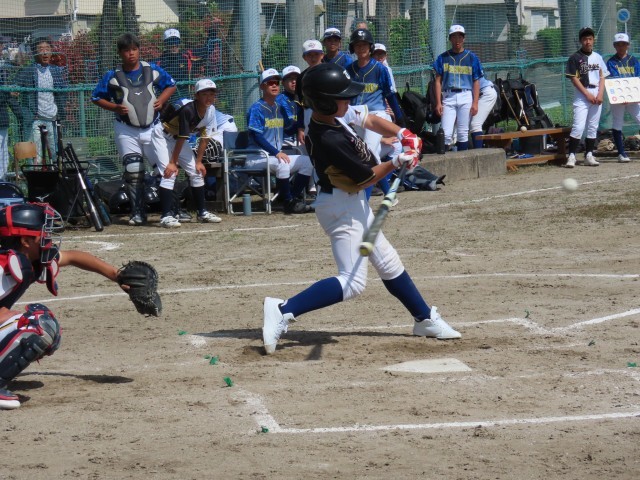 試合は、1回の表、応時中の攻撃、2アウト満塁のピンチを0点で抑えます。その裏、応時中のミスに助けられ2点先取します。その後、ピンチが続きますが、全員で守り抜き、5回に1点を取られますが、その裏すぐに1点取返し、3対1で、最終回6回表を迎えます。しかし、緊張からかピッチャーもコントロールが定まらず、ピンチが広がります。そして、2アウト満塁から長打を浴び、3点取られ逆転されてしまいます。そして、裏の攻撃も0点に抑えられ、6対3で負けてしまいました。あと少しで勝てたところからの逆転負けで、夏の大会に向けて課題の残る試合となりました。
