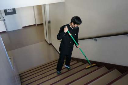 3年生が学年末テストで下校したため、3年生の掃除場所も在校生が自主的に掃除をしていました。3年生がいないフロアはさみしい感じがして、卒業が近いことを実感します。