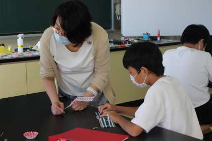 カードケースつくり、クラフト手芸、フラワーアレンジメントのようす