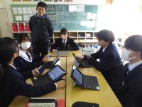 1年A組の英語の授業の様子です。不規則動詞を使って、英語で作文をつくりました。